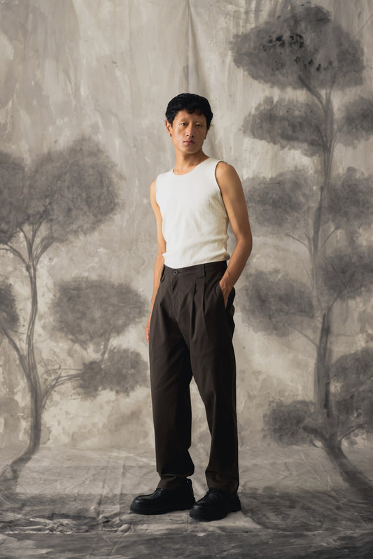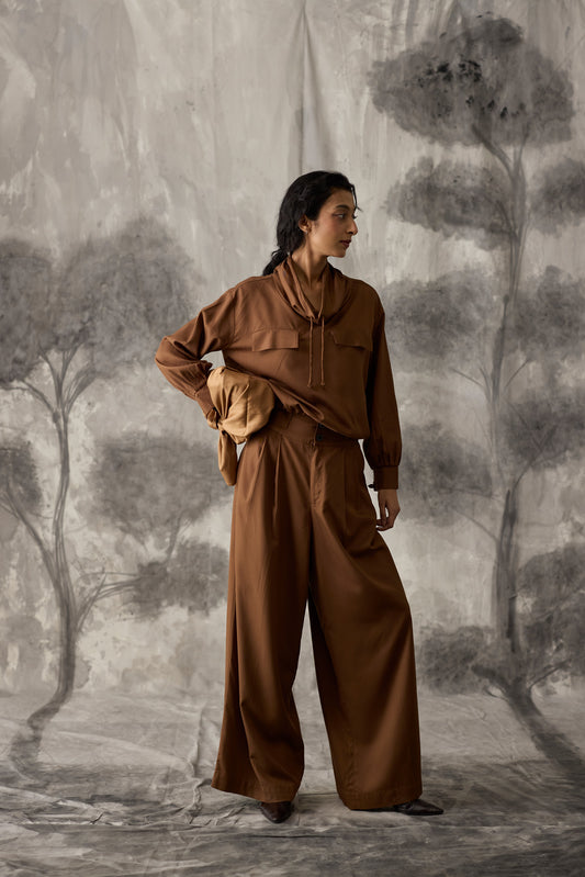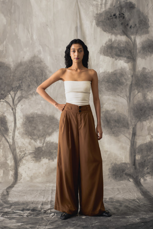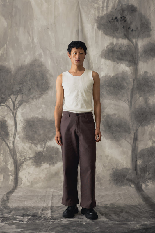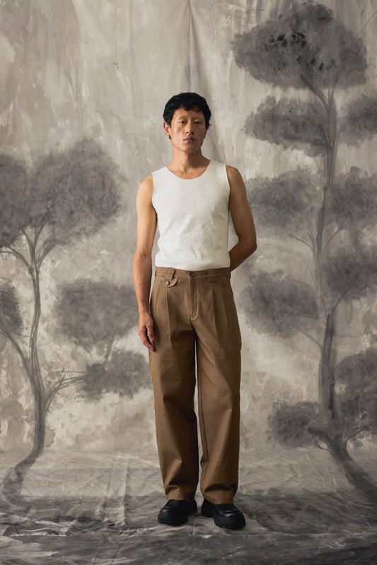 Brown Linen Wide Trousers - Men