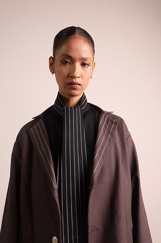 Linen Oversized Blazer with Pinstripe Lapels