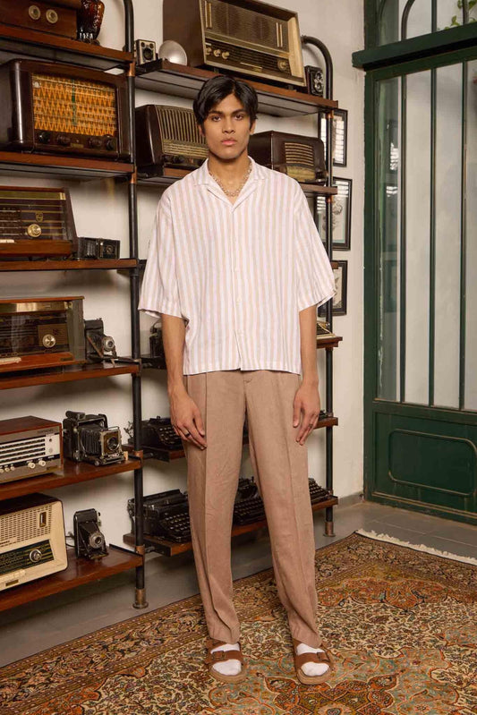 Striped Pleated Linen Trousers