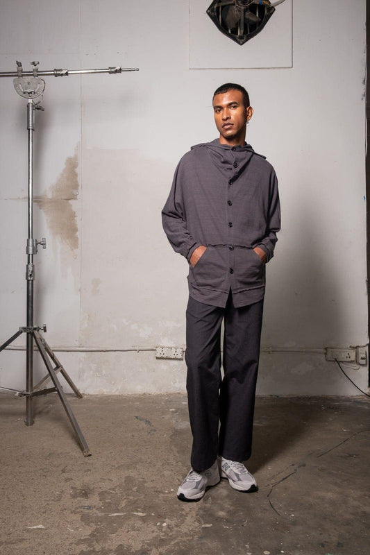 Knit Button Down Hoodie - Grey