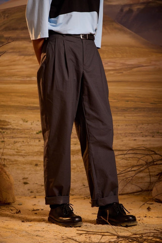 Wide Double Pleated Trousers - Ripstop Grey