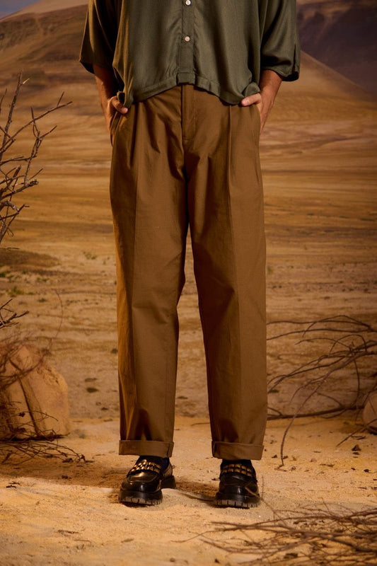 Wide Double Pleated Trousers - Brown