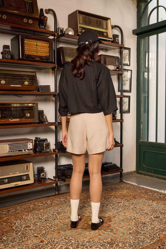 Pleated Linen Shorts - Beige