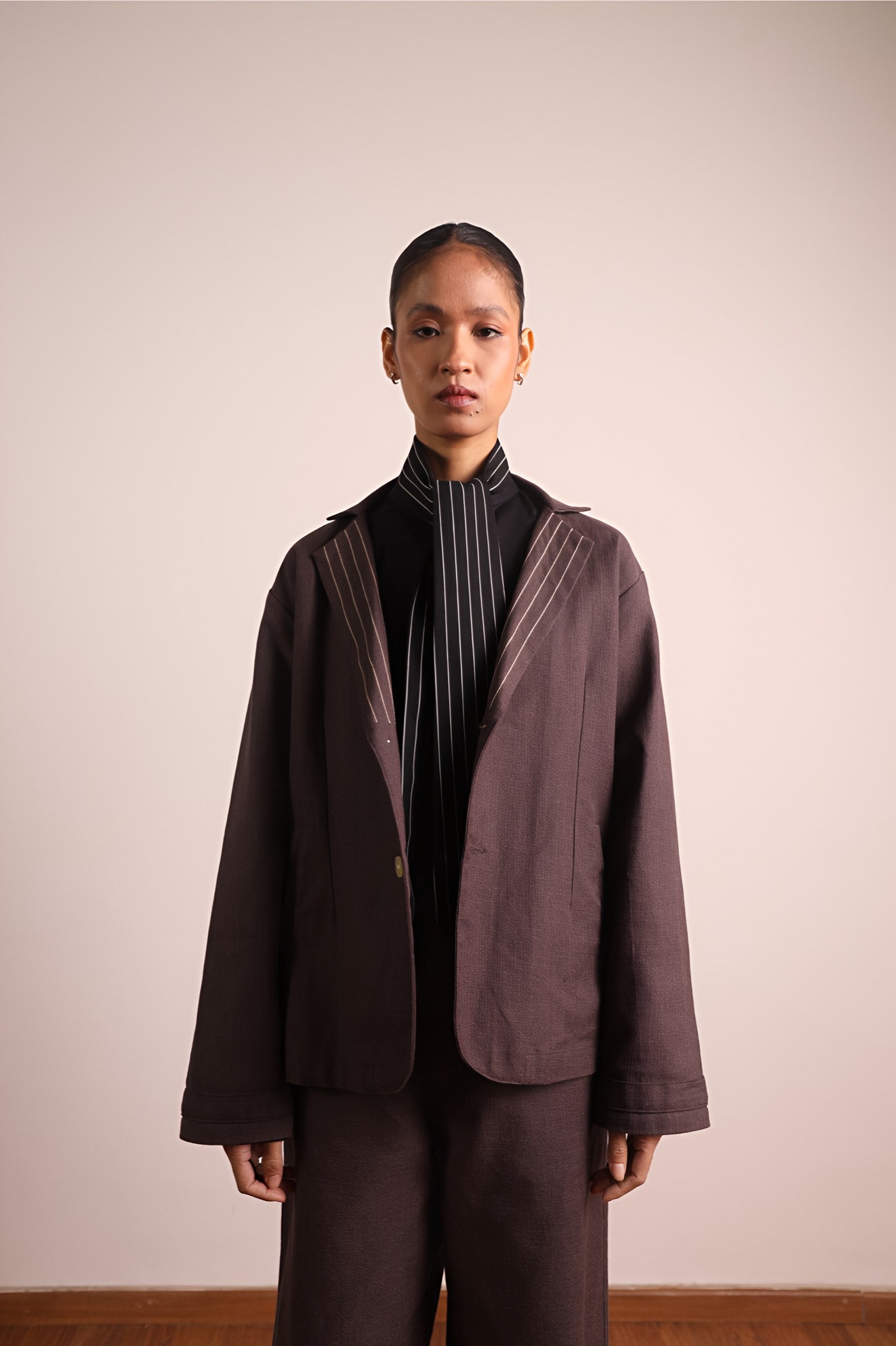 The Linen Oversized Blazer with Pinstripe Lapels is designed as a refined daily essential.