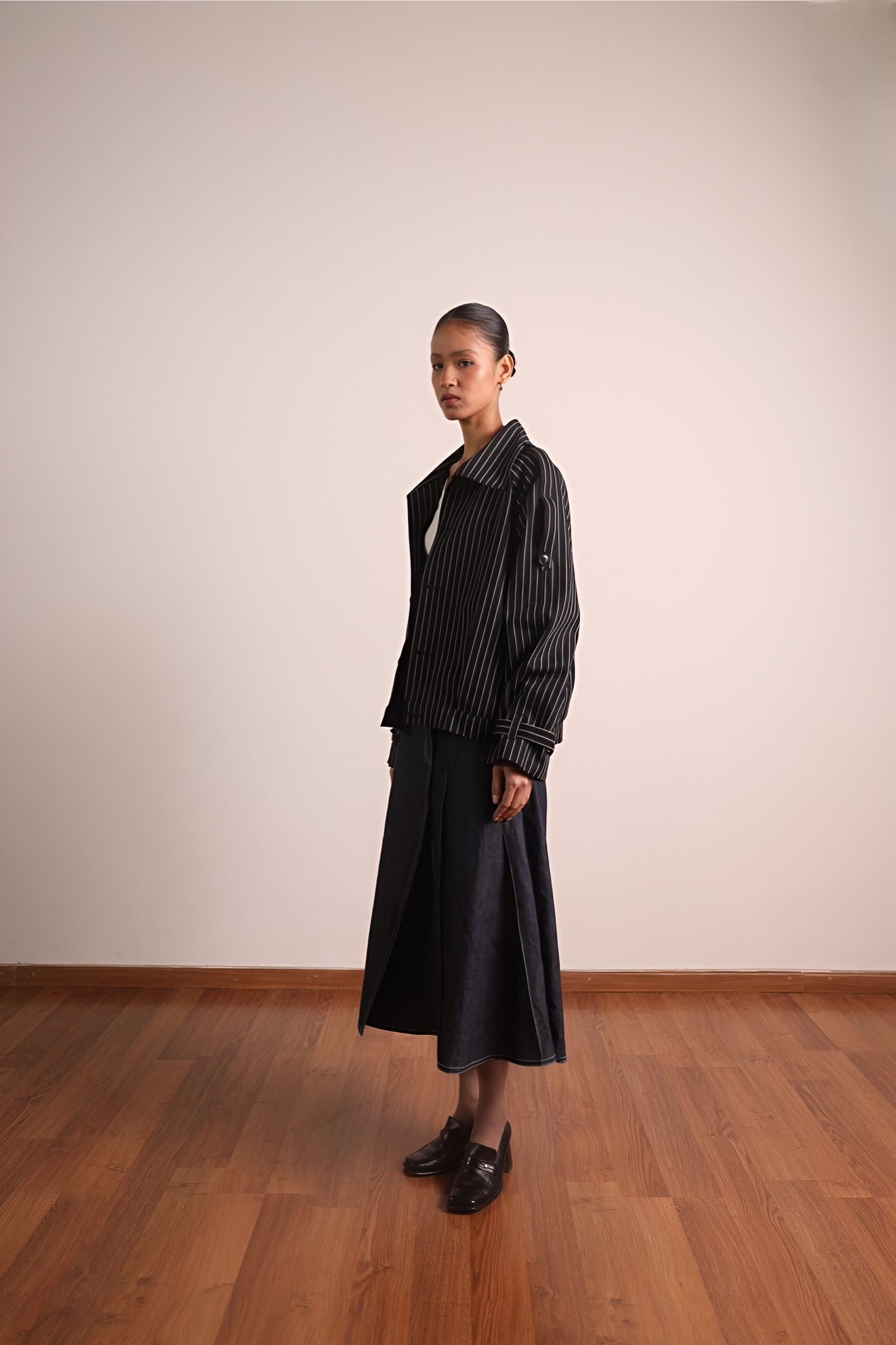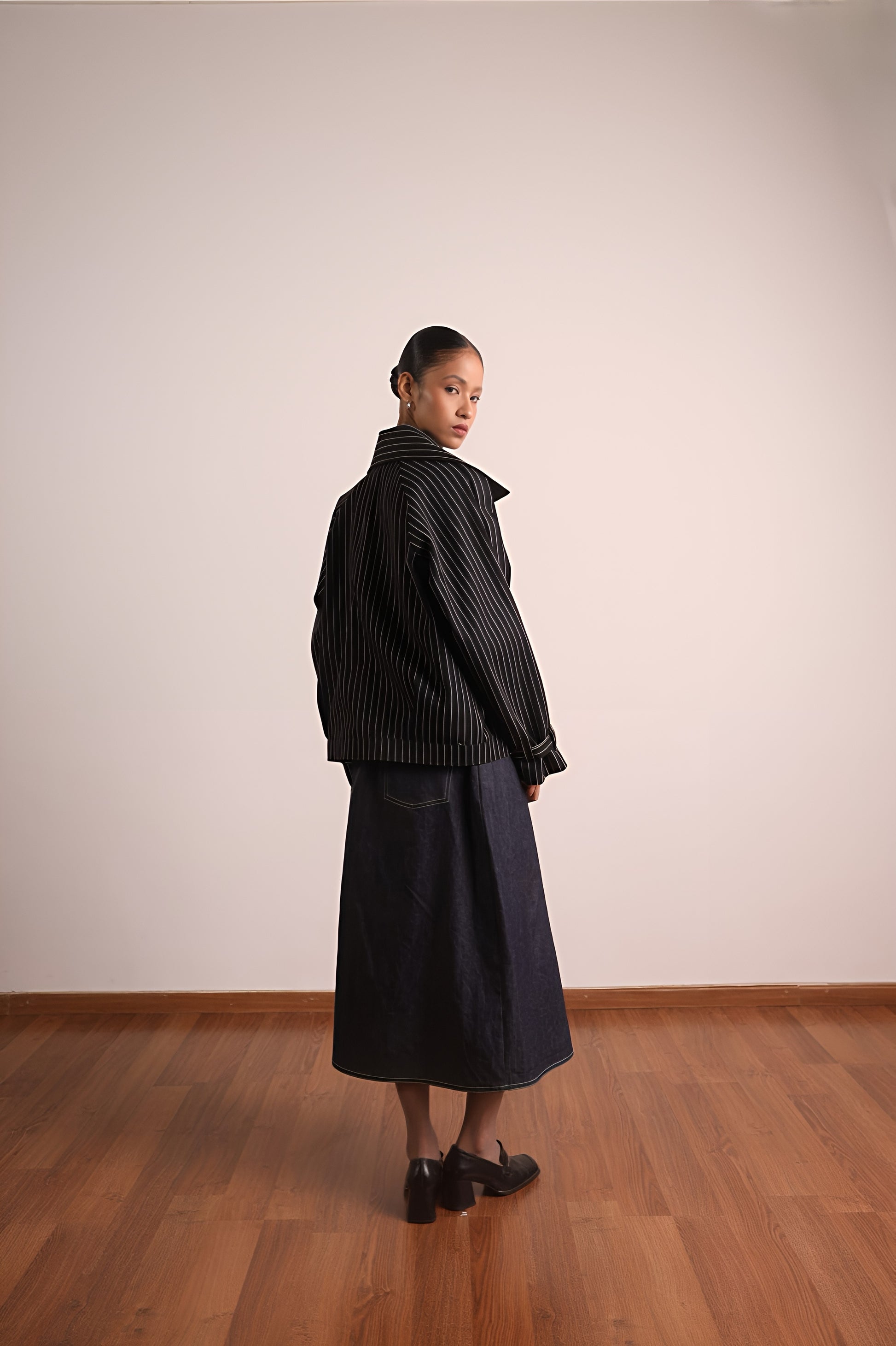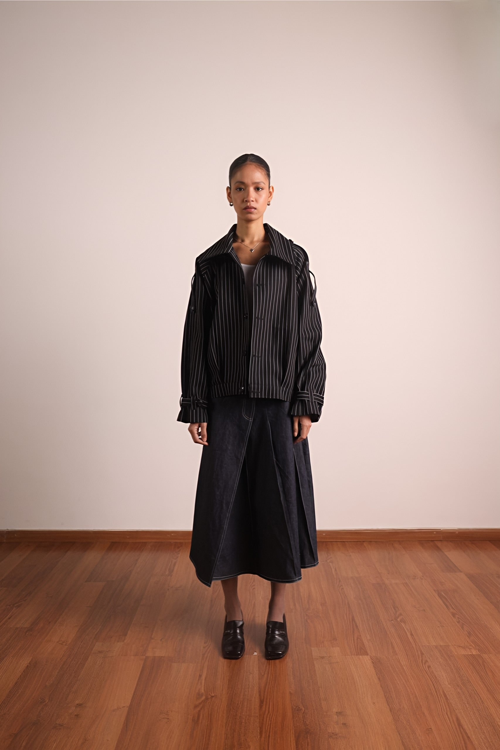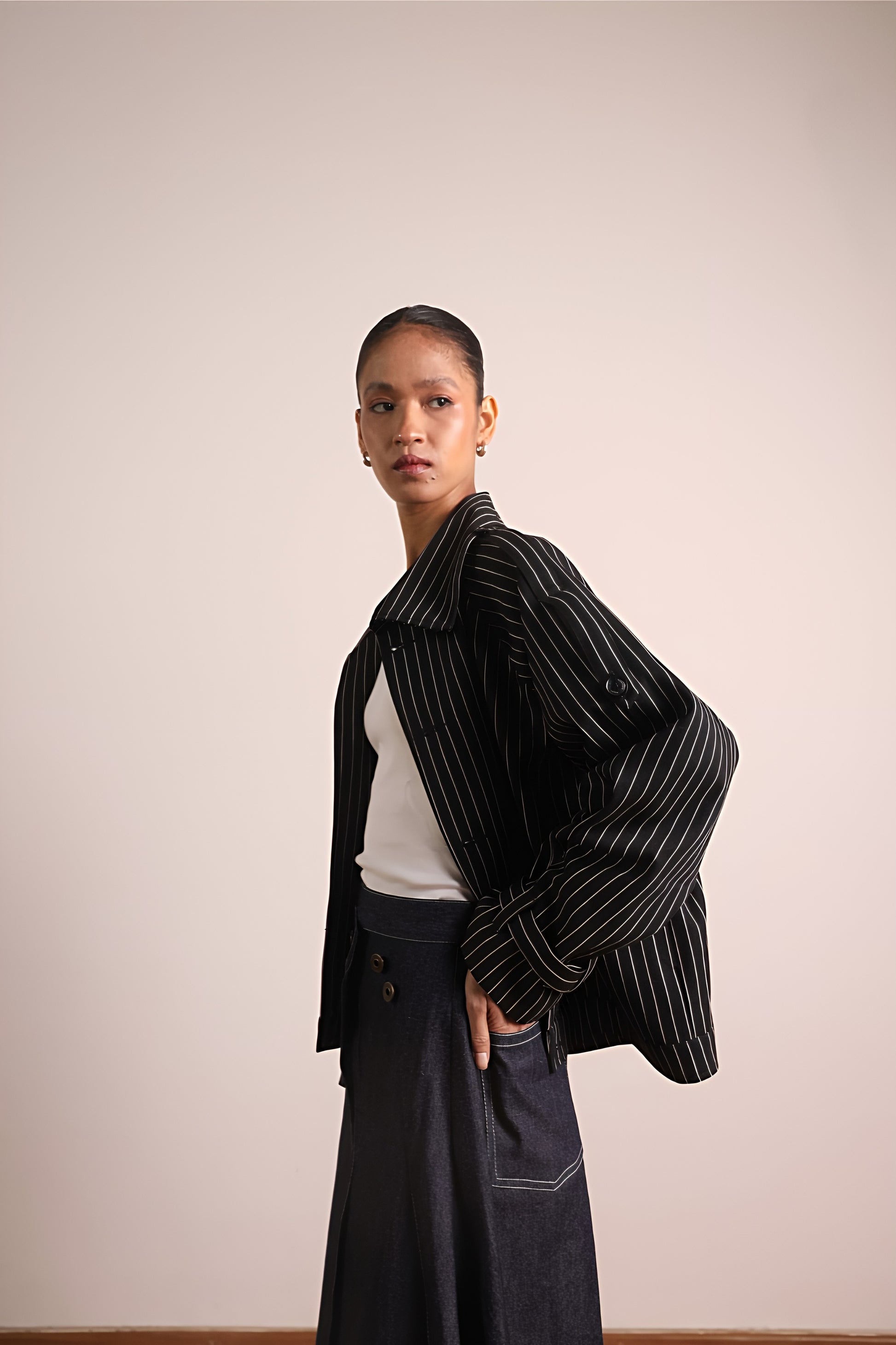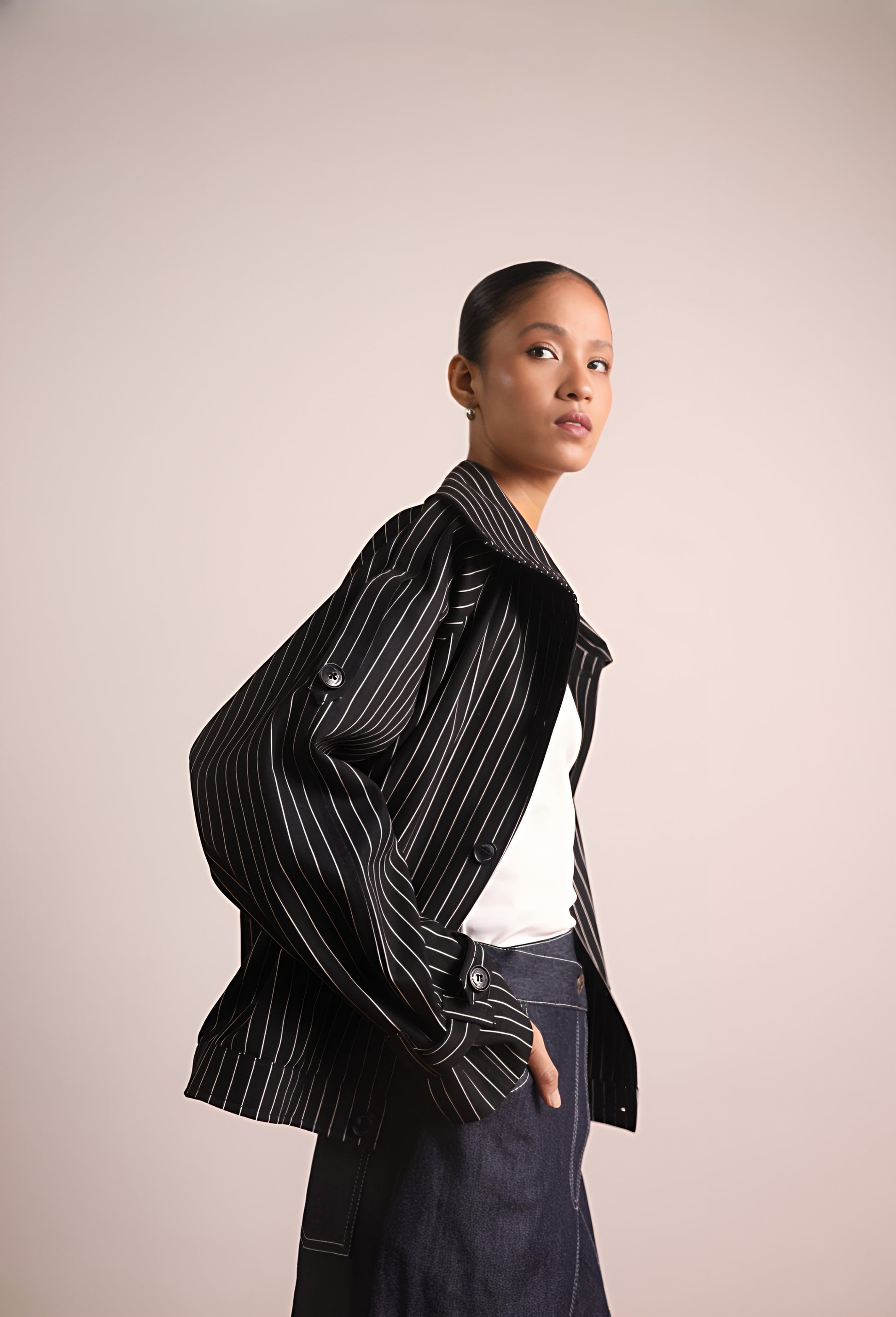 The Pinstripe Airfield Bomber is a modern interpretation of a classic outerwear staple.